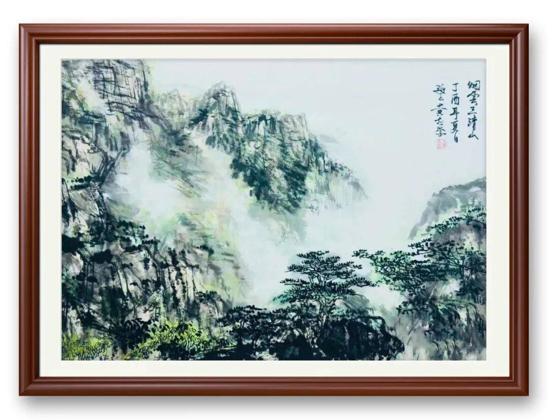 难能可贵的是,先生画松,不止于形,更重于神,将松的风骨与自身的情怀相融共生。他笔下的松,不是孤立的景物,而是有灵魂、有品格的生命载体——或孤植崖壁,亭亭玉立,显独处不孤的气节;或丛生山间,枝干相依,藏抱团坚韧的力量;或迎风而立,松针舒展,展向阳而生的胸襟。没有刻意的姿态,没有冗余的点缀,寥寥笔墨,便将松“顶风傲雪、坚韧不拔”的品格,诠释得淋漓尽致。