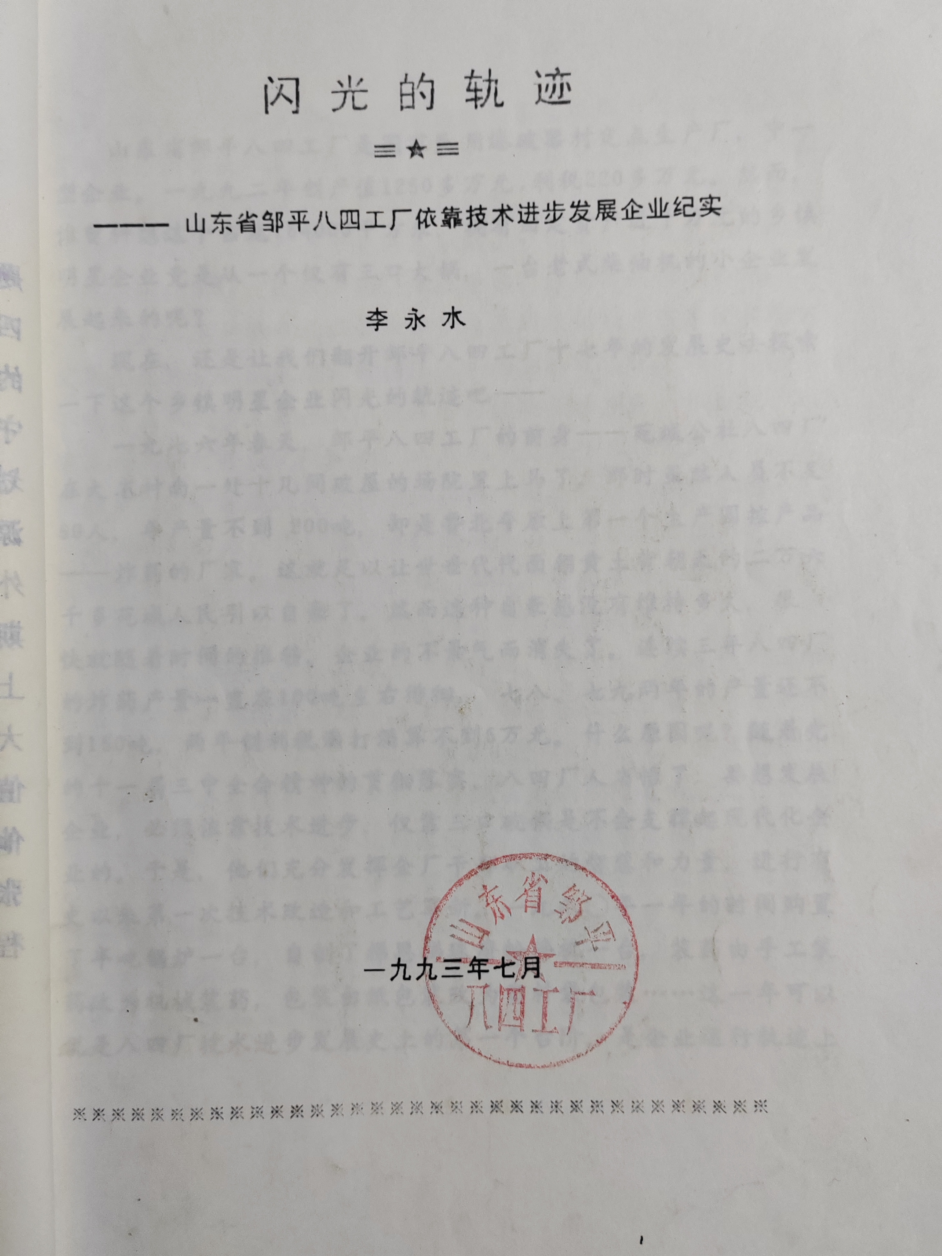 现在,还是让我们翻开邹平八四工厂二十多年的发展史,去探索一下这个乡镇明星企业闪光的轨迹吧──