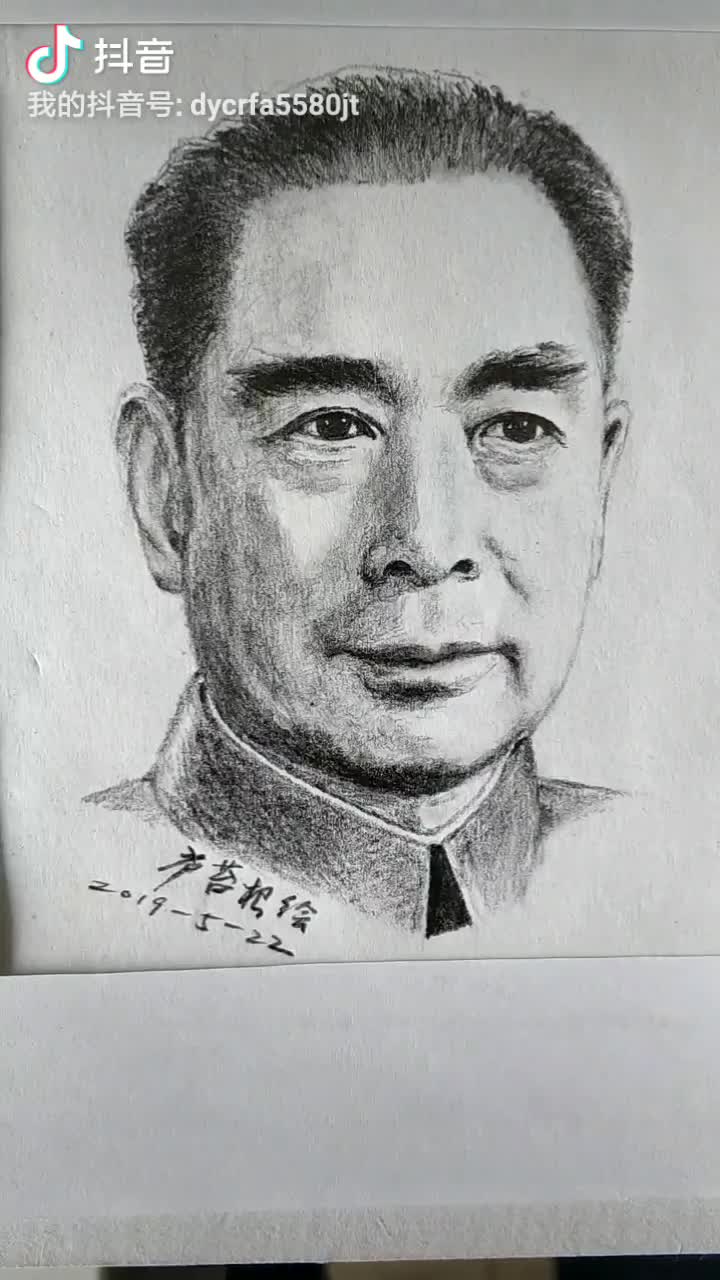 庐苔根用铅笔画敬爱的周总理