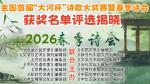全国首届 “大河杯”诗歌大奖赛暨春季诗会征稿获奖名单评选揭晓
