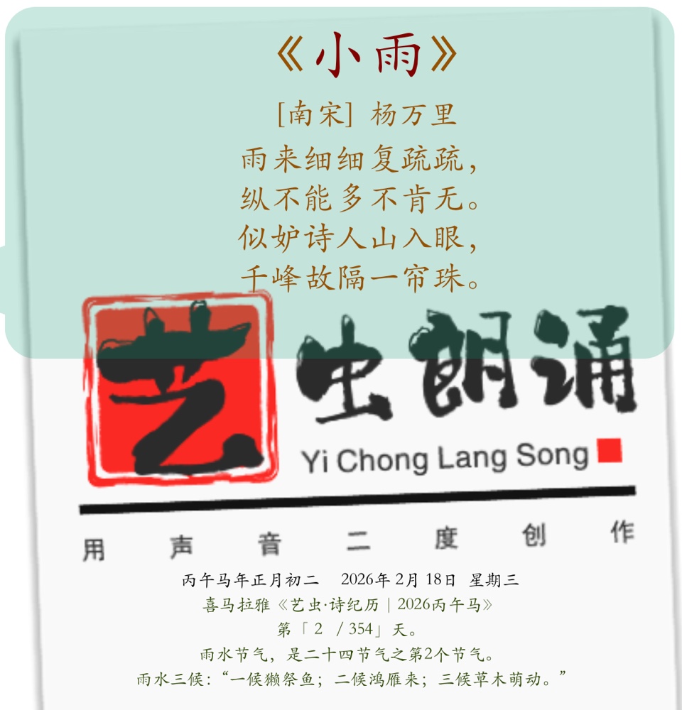 丙午马2.艺虫日读古诗词《小雨》南宋·杨万里