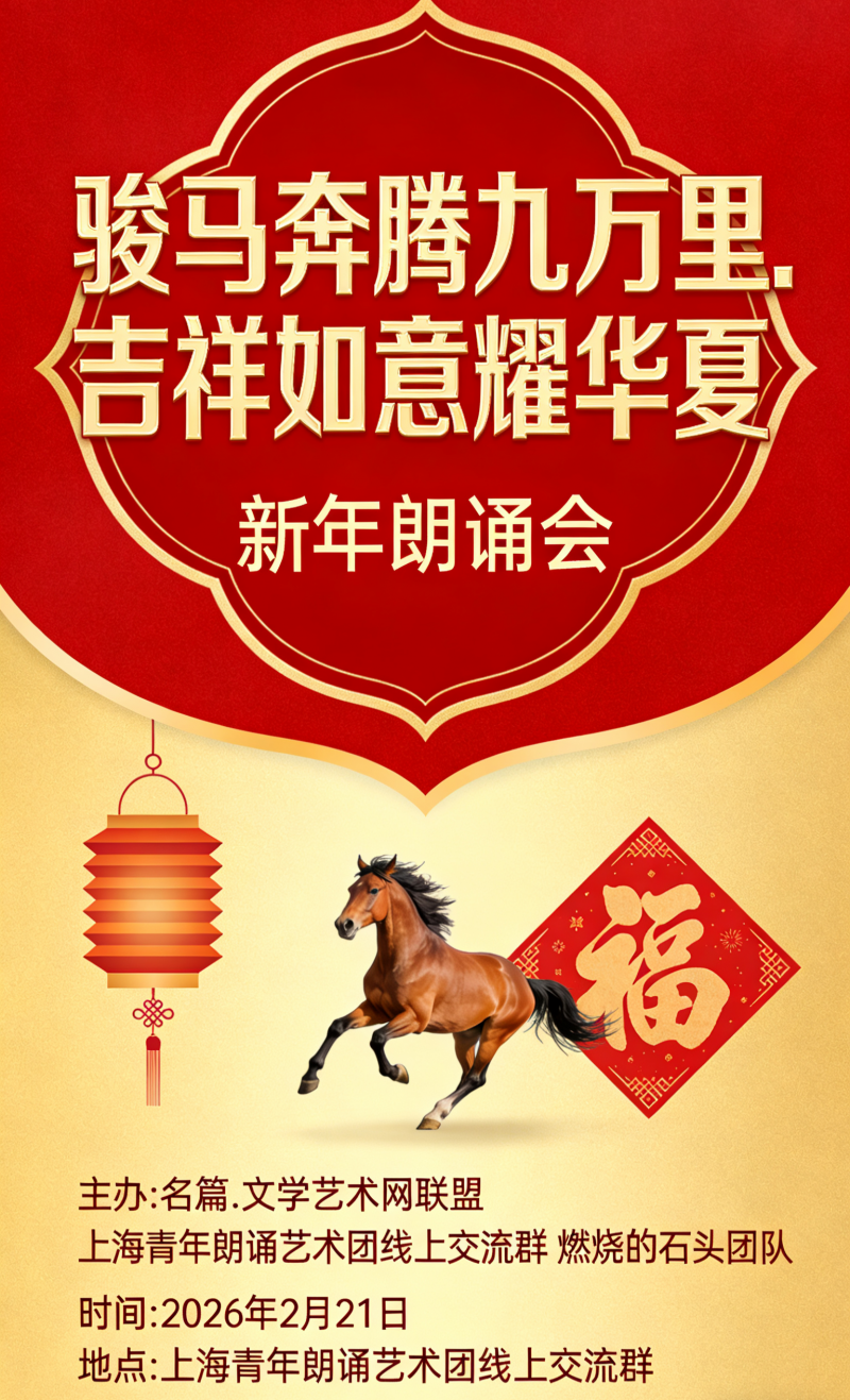世界文学联盟//“骏马奔腾九万里.吉祥如意耀华夏”新年朗诵会//主办:上海青年朗诵艺术团线上交流群燃烧的石头团队