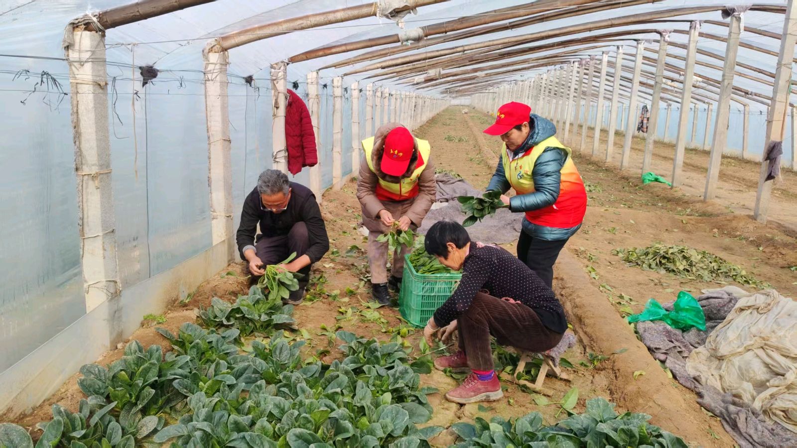 顶风冒寒步履坚 志愿送策菜棚暖