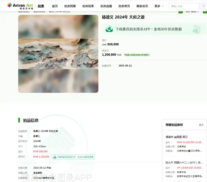 恭贺画家杨德义作品《天府之源》在香港康乾拍卖公司落锤成交!