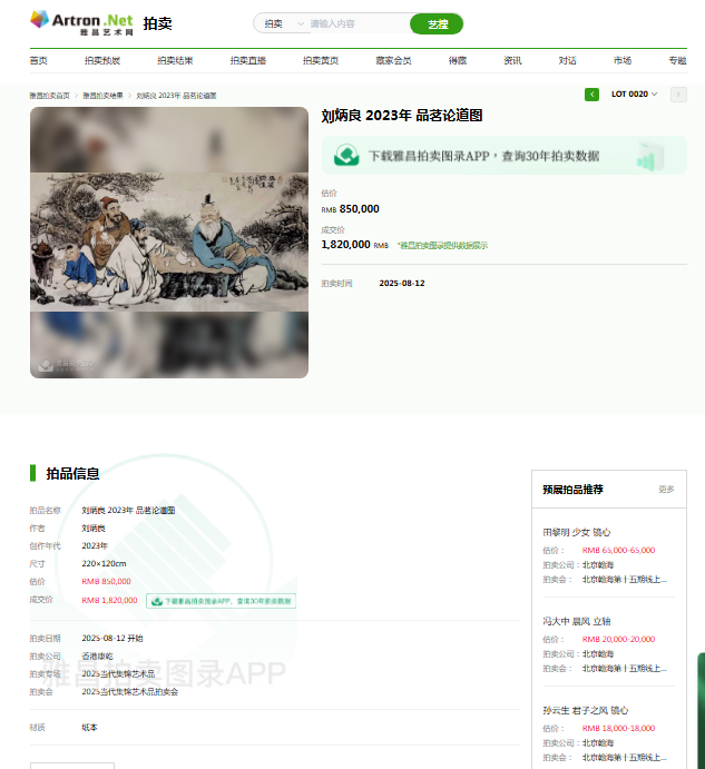 恭贺画家刘炳良作品《品茗论道图》在香港康乾拍卖公司落锤成交!