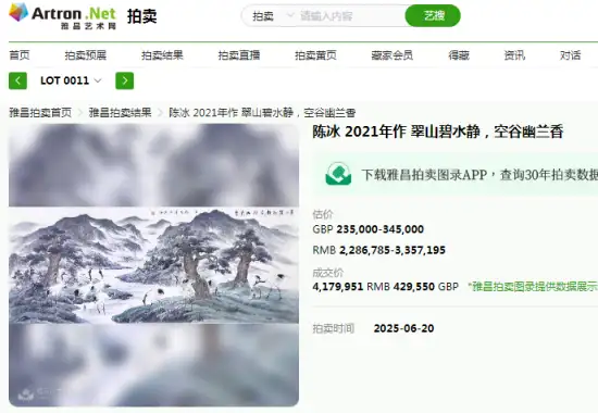 实力派画家陈冰作品《翠山碧水静,空谷幽兰香》拍卖成交!