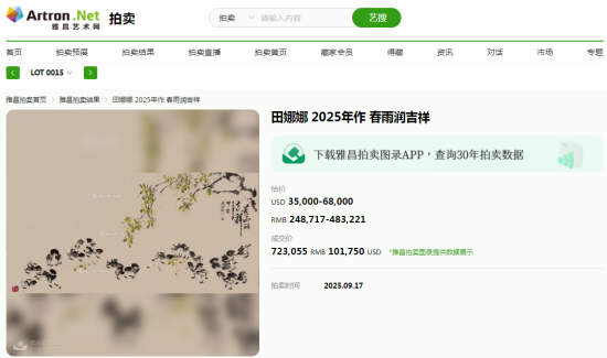 著名艺术家田娜娜作品在美国杜邦拍卖公司落锤成交
