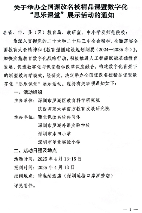 全国课改名校精品课暨数字化“思乐课堂”展示活动通知