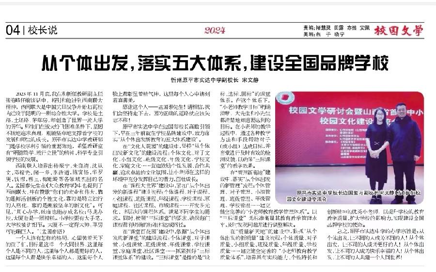 特稿:从个体出发新教育,助力《校园文学》大发展