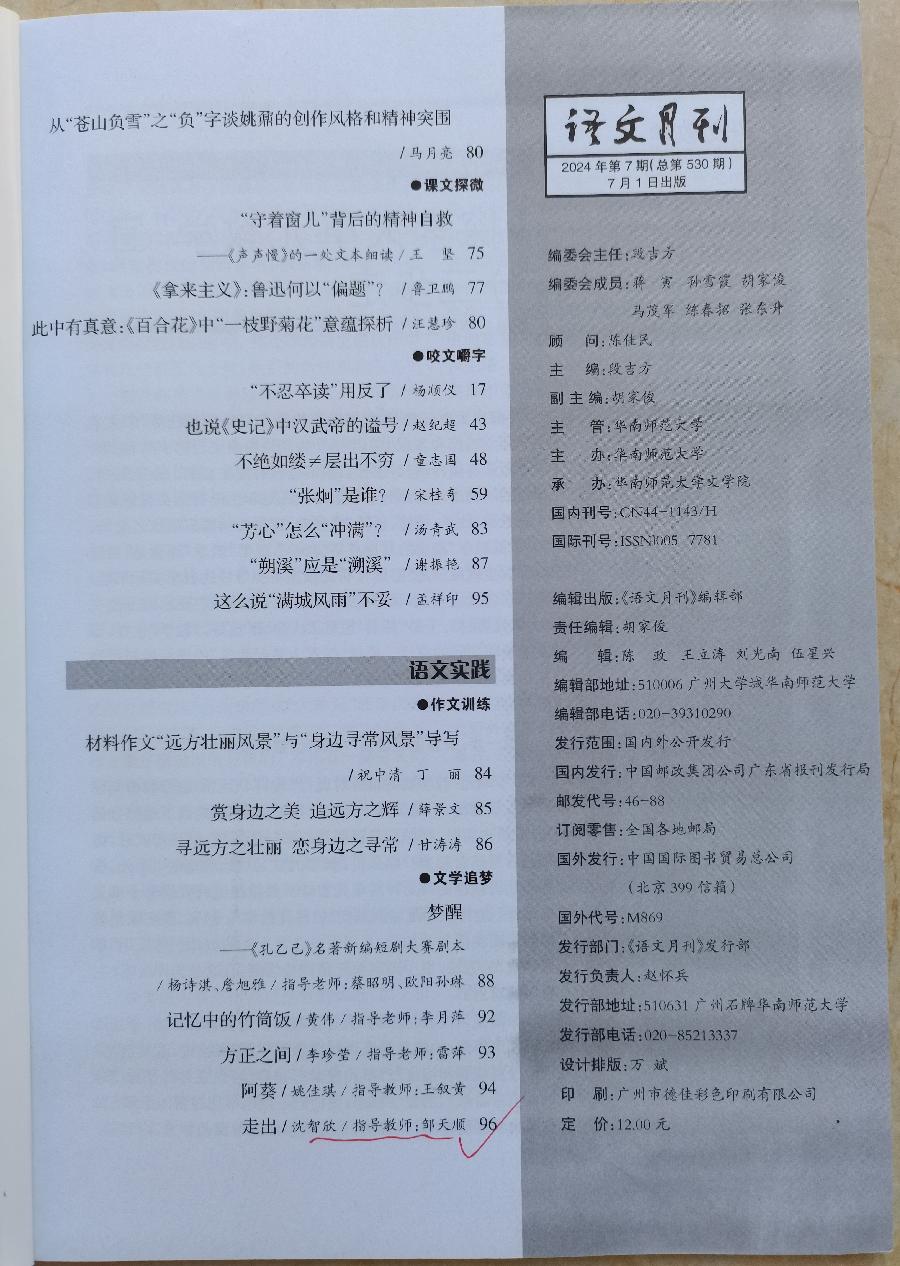 【教书育人】高三(12)班 沈智欣《走出》(《语文月刊》2024年第7 期)》)