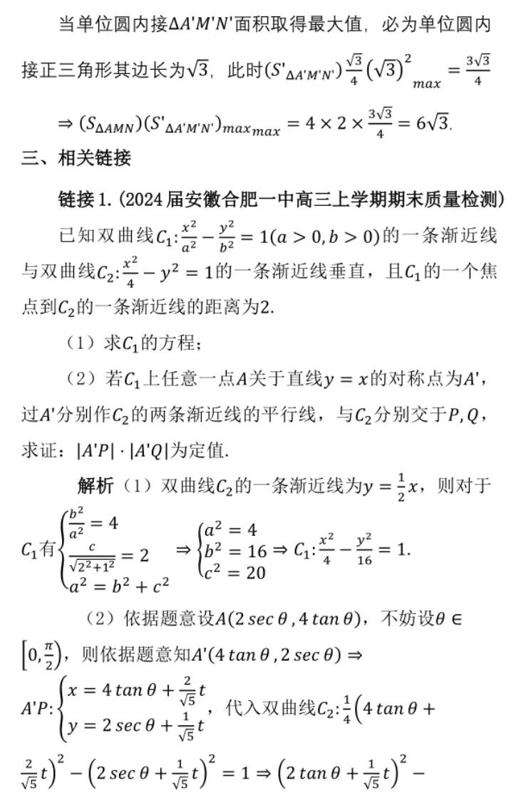 张润平:2024届浙江省四校联盟高三上学期期末解析几何题