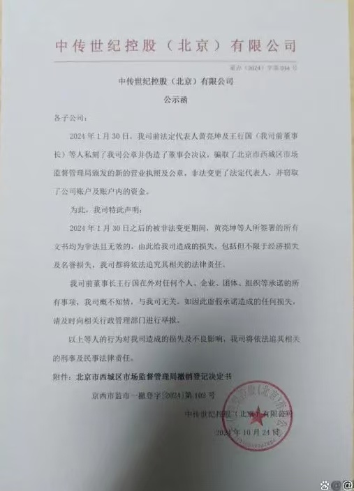 中传世纪控股(北京)有限公司法人代表被非法变更