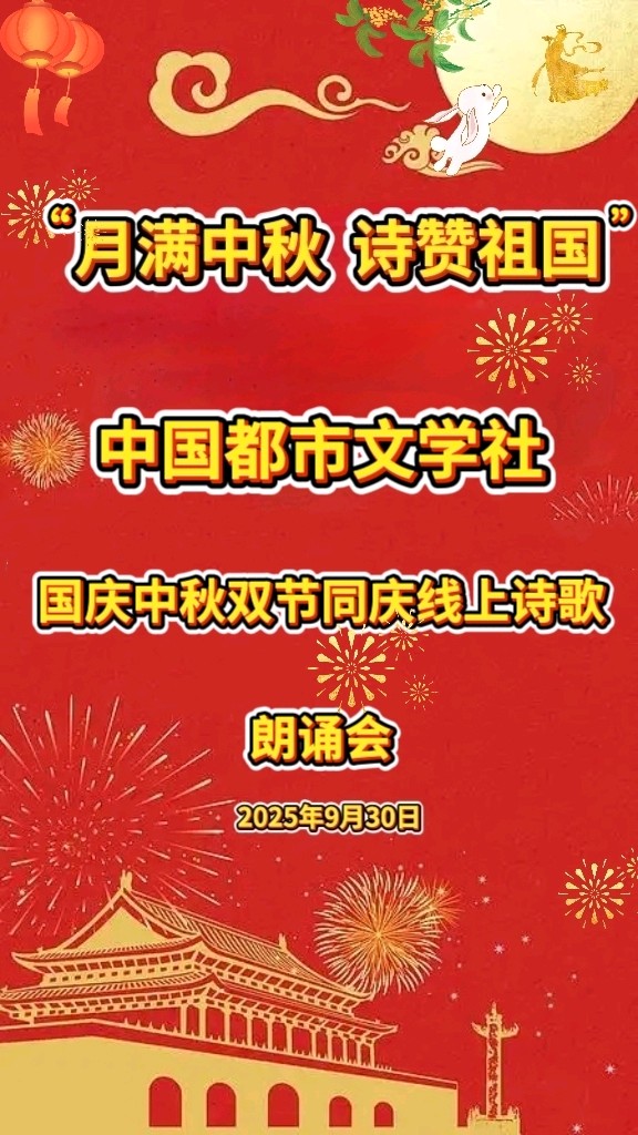 【国庆节特刊】“月满中秋,诗赞祖国”云端朗诵晚会 ‖ 中国都市文学社隆重出品
