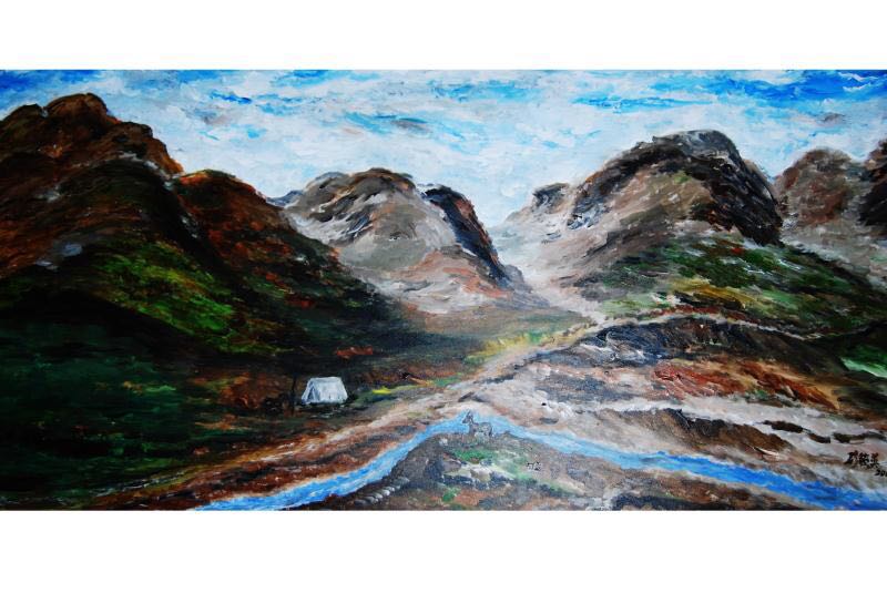 城市头条编委会主任尹玉峰著录顾锁英《写给大漠》诗画一组