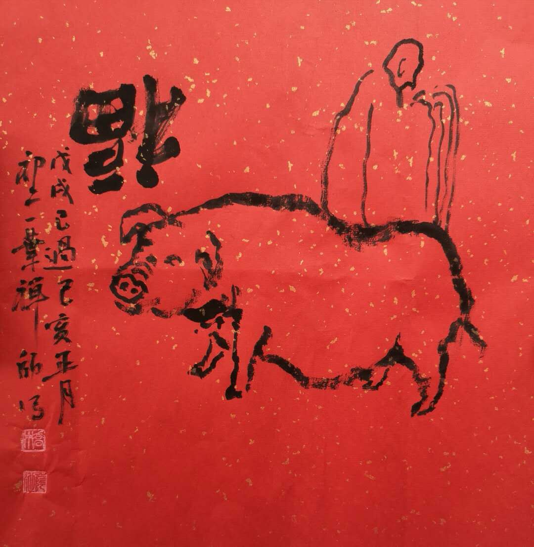 七绝-乔木画猪 诗/周阳生 画/乔木