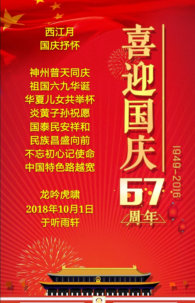 国庆征文比赛 《诗词歌赋》群 龙吟虎啸老师参赛作品