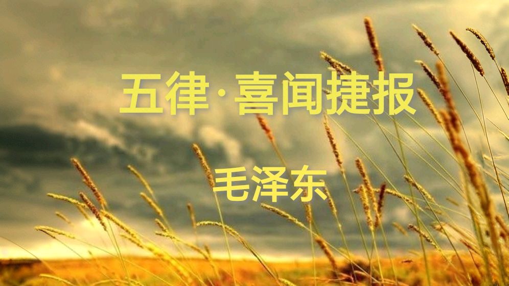 【佳音传诵·“月满华诞·国庆·中秋”专刊】 《五律·喜闻捷报》 作者:毛泽东 Ⅱ 主播 :李宏哲 Ⅱ 编辑制作:彭佳 (总第404期)