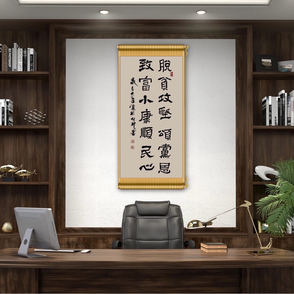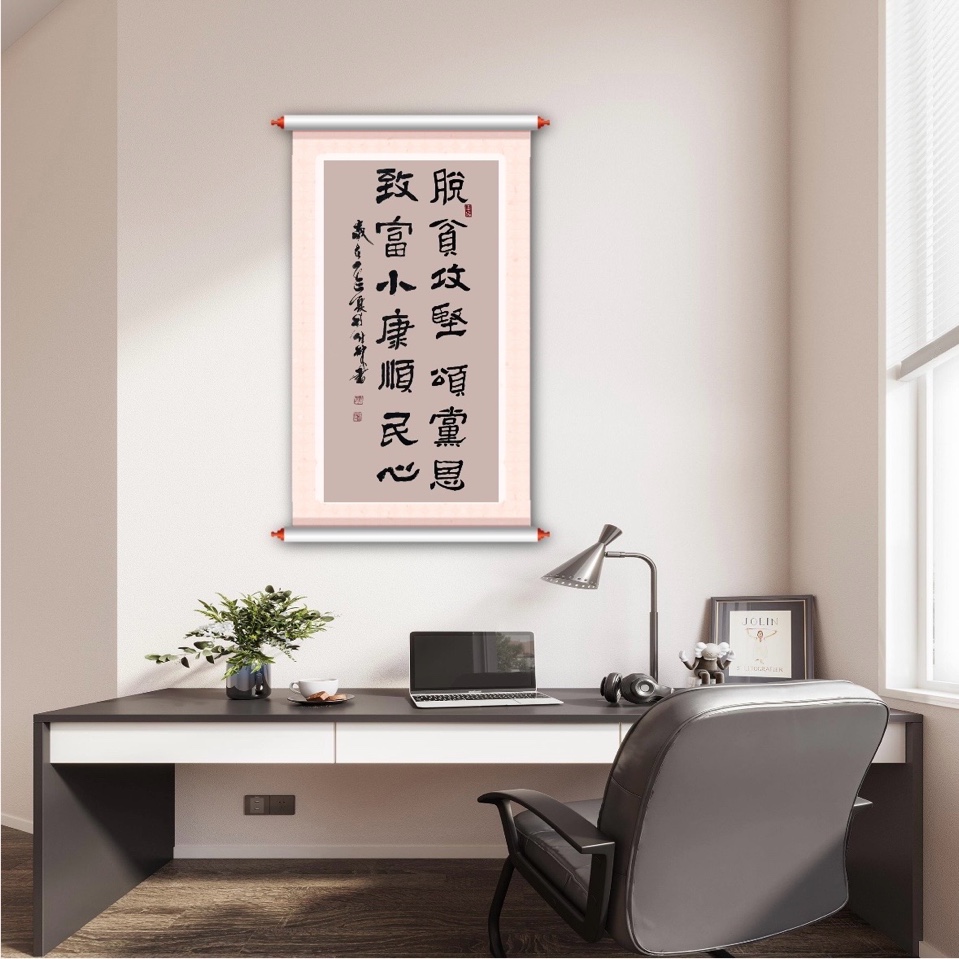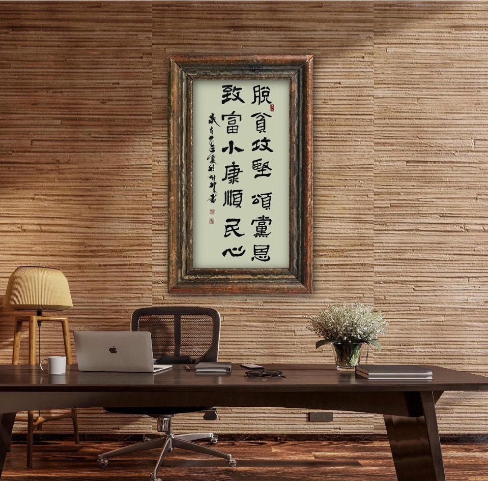 竖幅书法: 脱貧攻堅颂党恩, 致富小康顺民心。