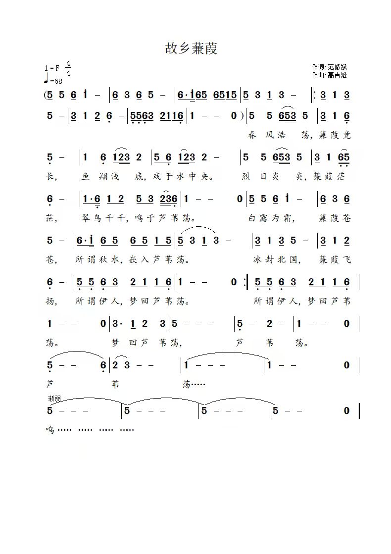 【泰山音乐】《 故乡蒹葭 》作词 演唱/范修斌 作曲/高吉魁