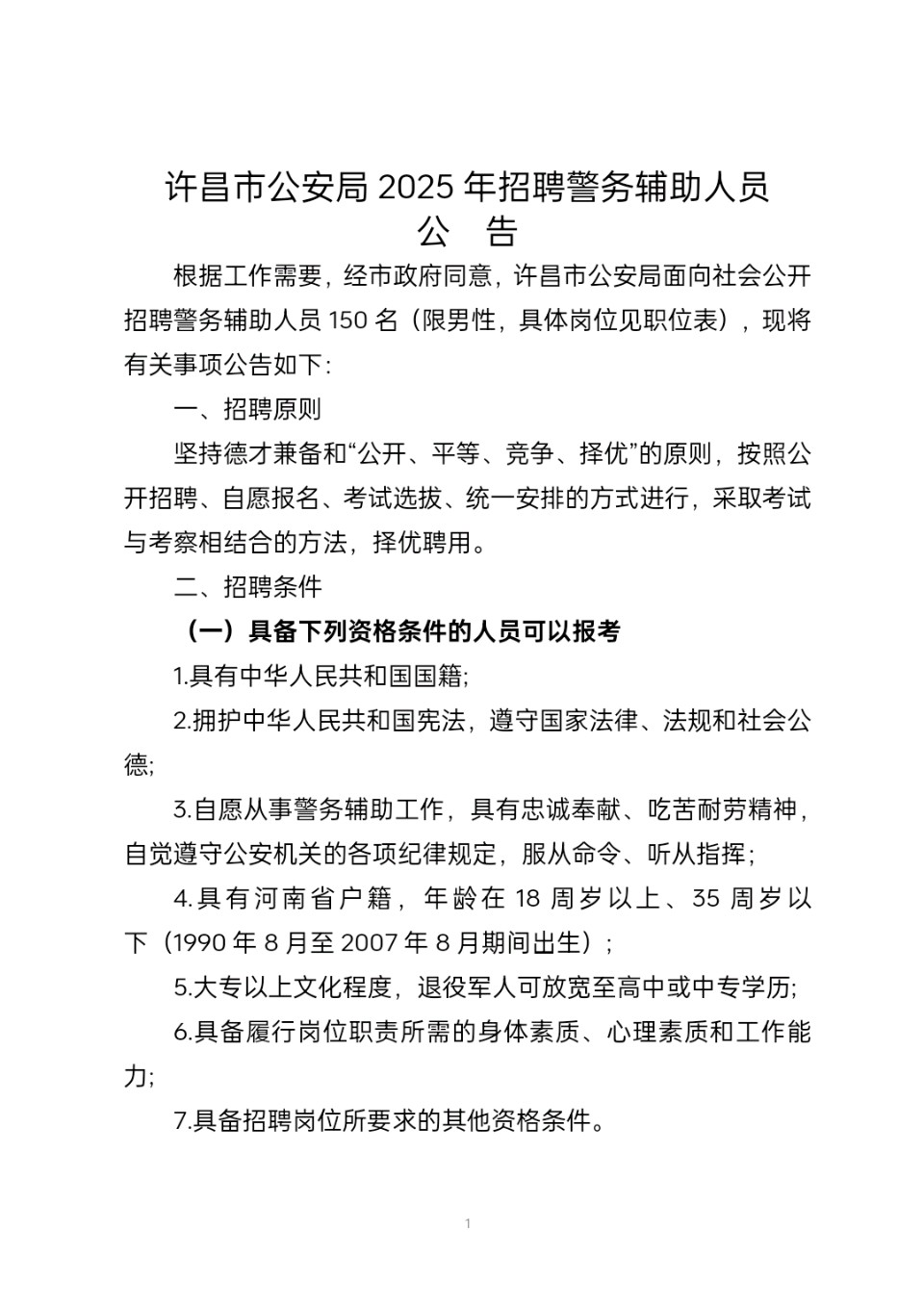 河南许昌:许昌市公安局2025年招聘警务辅助人员公告。
