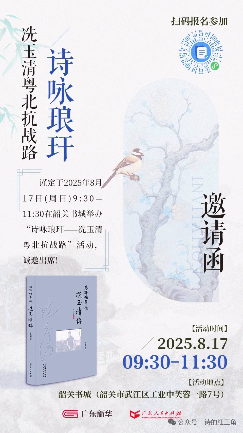 欢迎参加广东新华集团、广东人民出版社在韶关书城举办的'诗咏琅玕——冼玉清粤北抗战路'活动,领略岭南第一才女的风采!