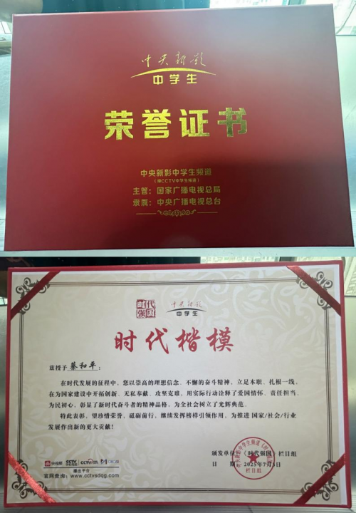 中央《时代强国》栏目组授予器乐王子蔡和平“时代楷模”称号