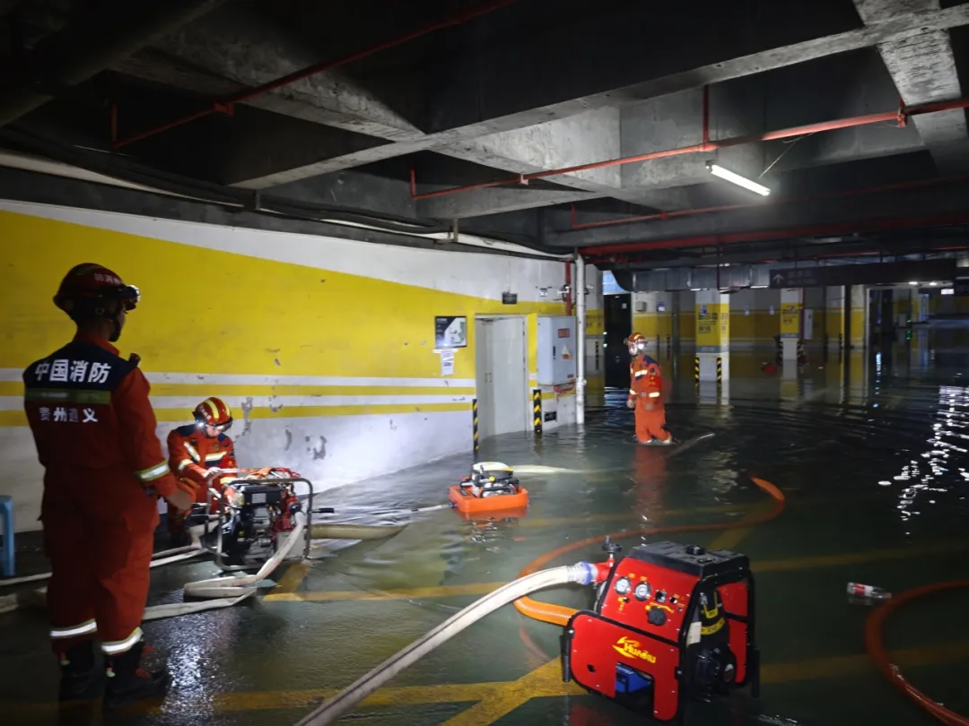 遵义汇川:强降雨致地下车库被淹,消防8小时奋战排涝!