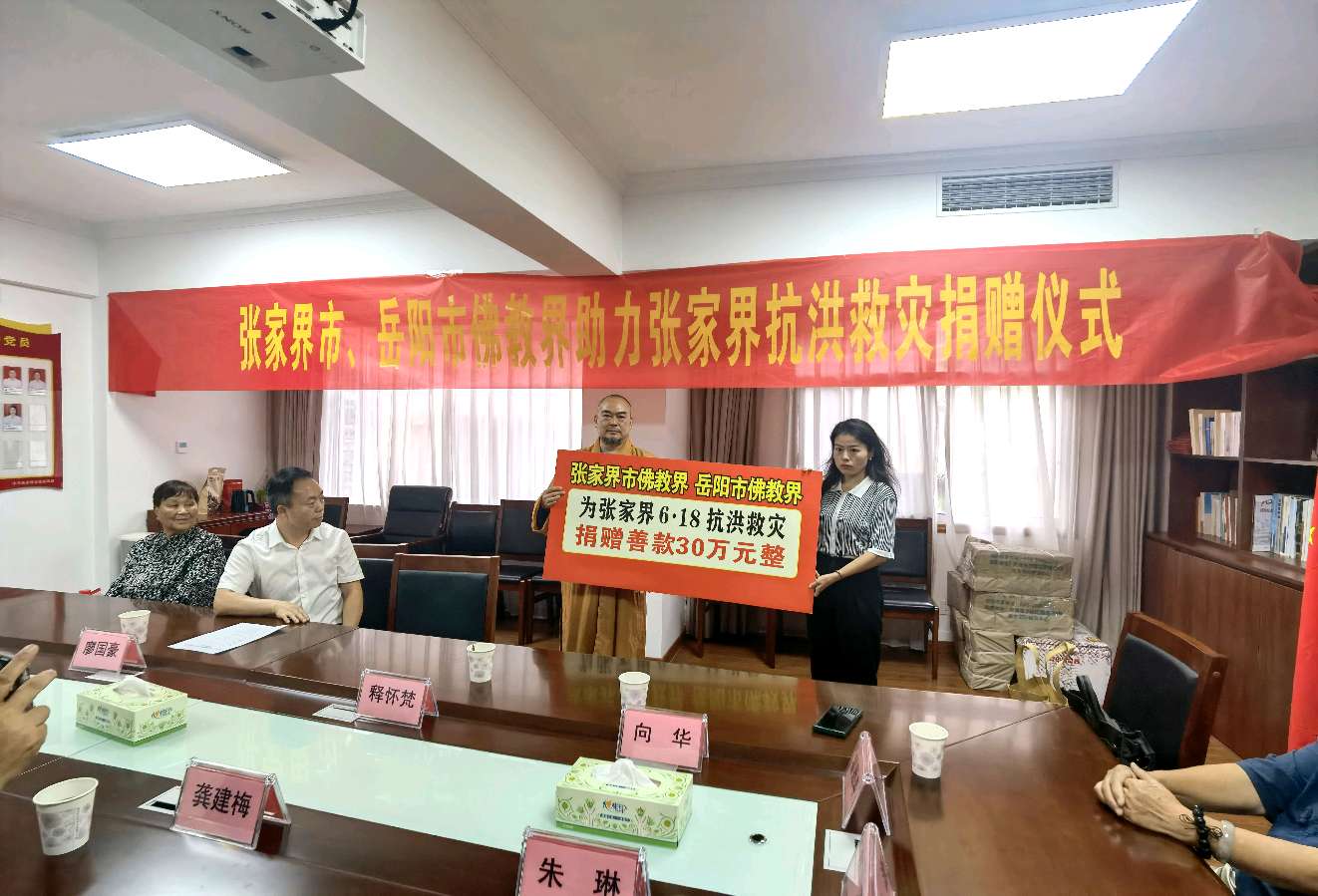 张家界市、岳阳市佛教界为张家界市洪涝灾害捐款三十万元