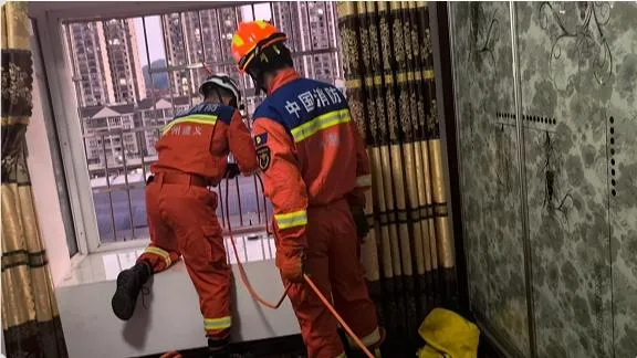 惊险!空调安装工被困,遵义消防紧急救援化险情