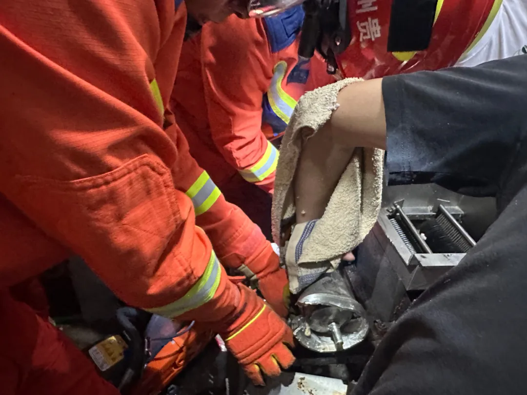 正安一男子被绞肉机“咬”手 消防紧急救援