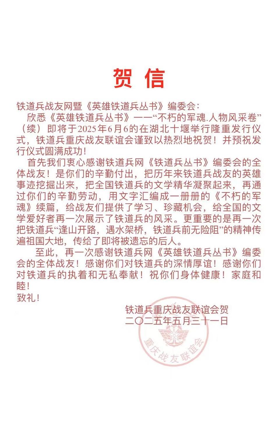 铁道兵重庆战友联谊会热烈祝贺《不朽的军魂·人物风采卷》隆重发行
