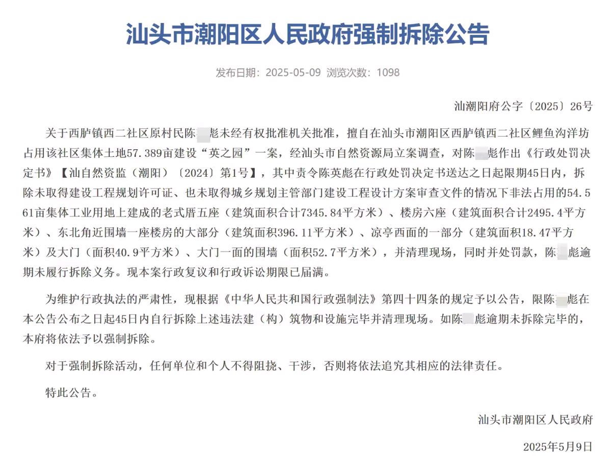 估价超1亿元的汕头违建豪宅“英之园”开拆 村民:几十辆挖掘机进场 已基本清拆完毕