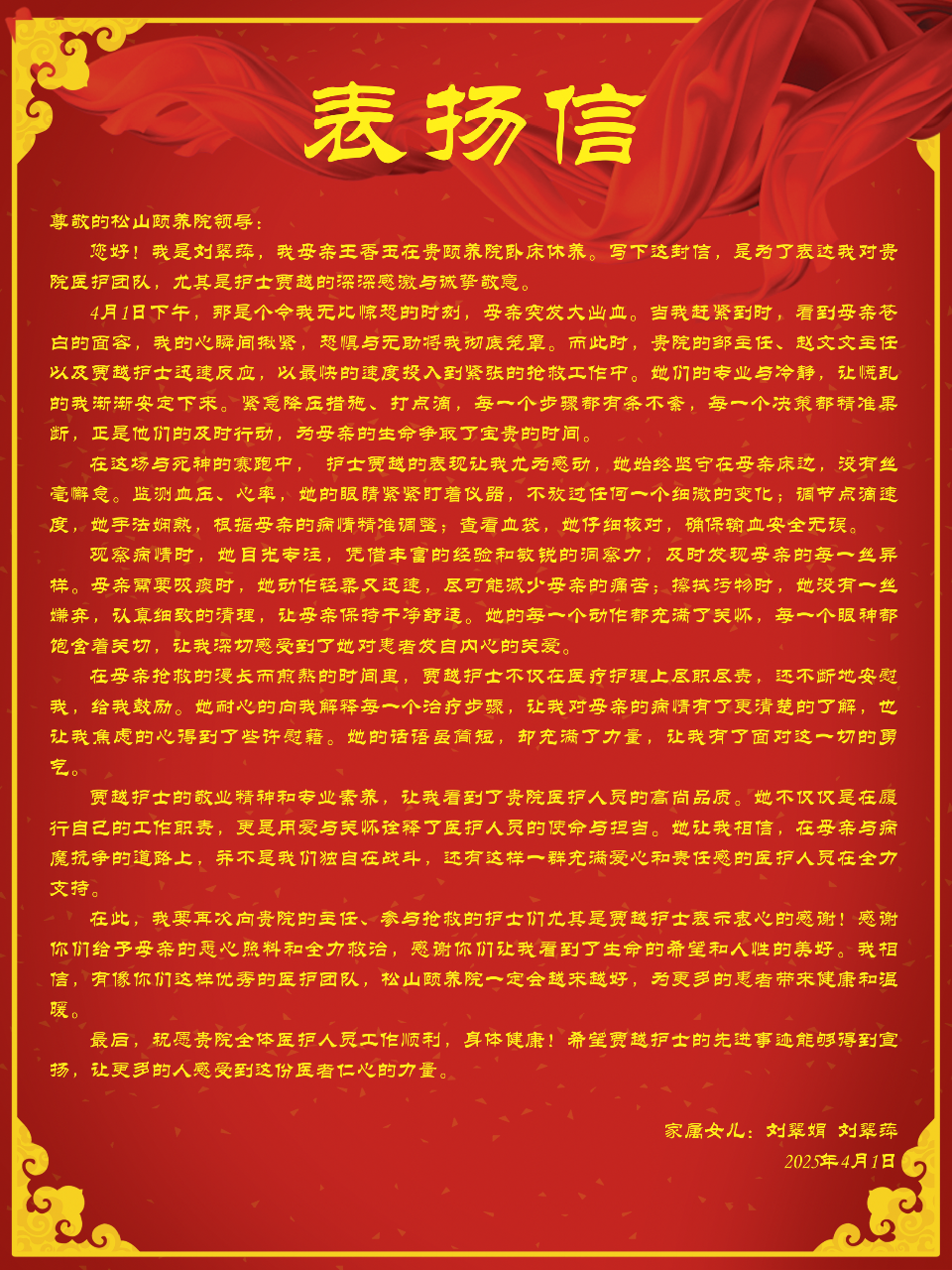一封表扬信窥见一支优秀医护团队