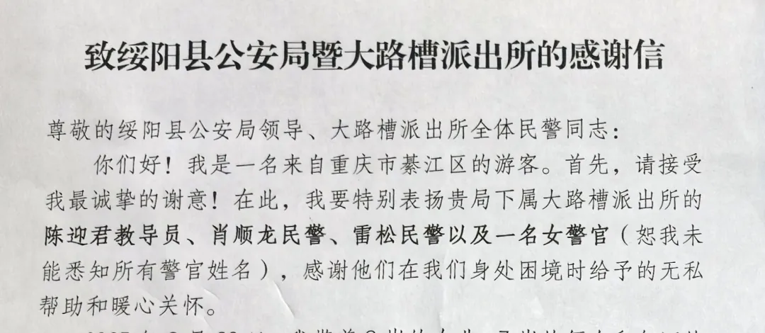 【阳光下的守护 】重庆游客点名表扬绥阳公安四名警官