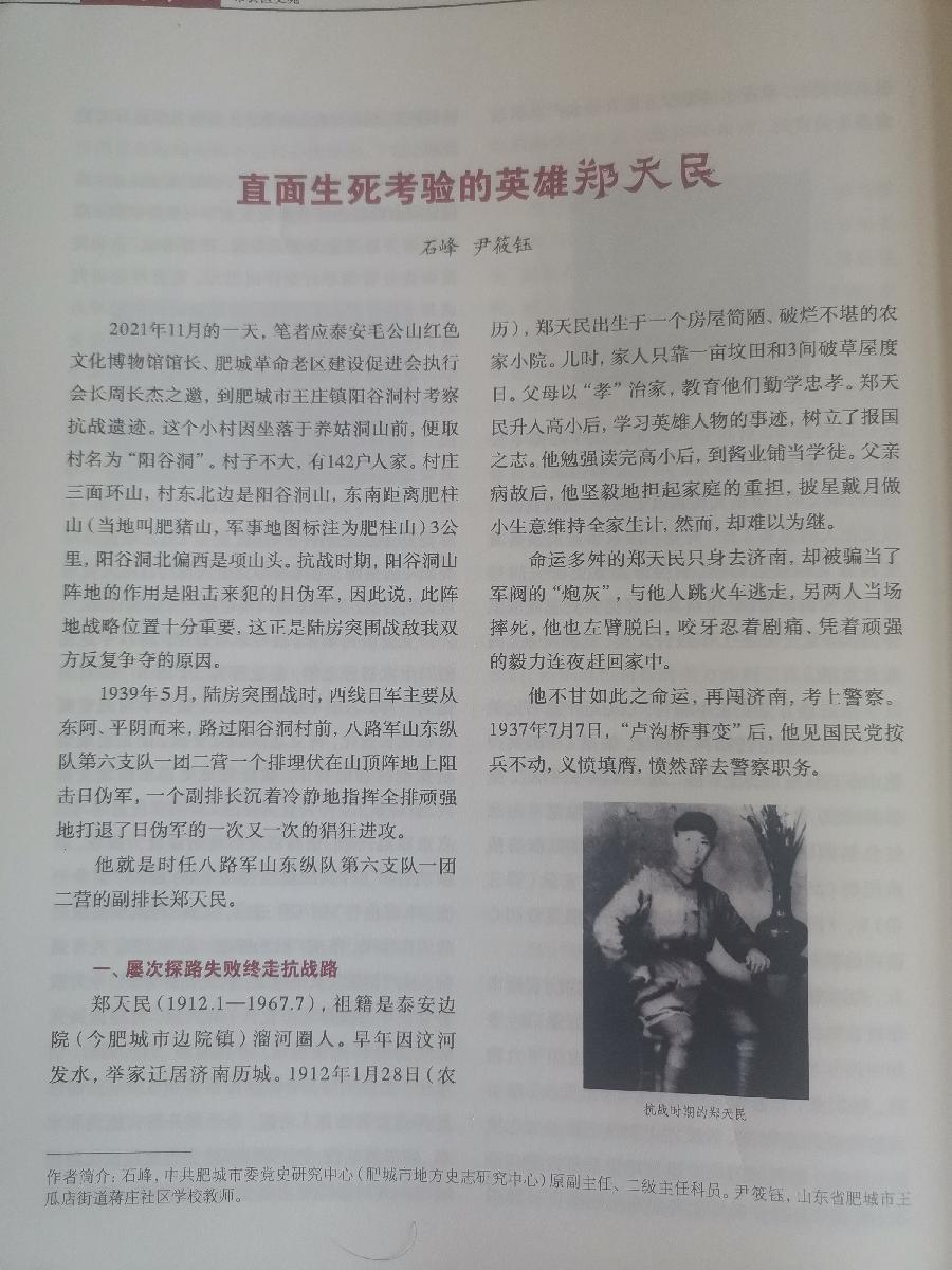 【山东党史•英雄篇】《直面生死考验的人民英雄—郑天民》文/石峰 尹筱钰