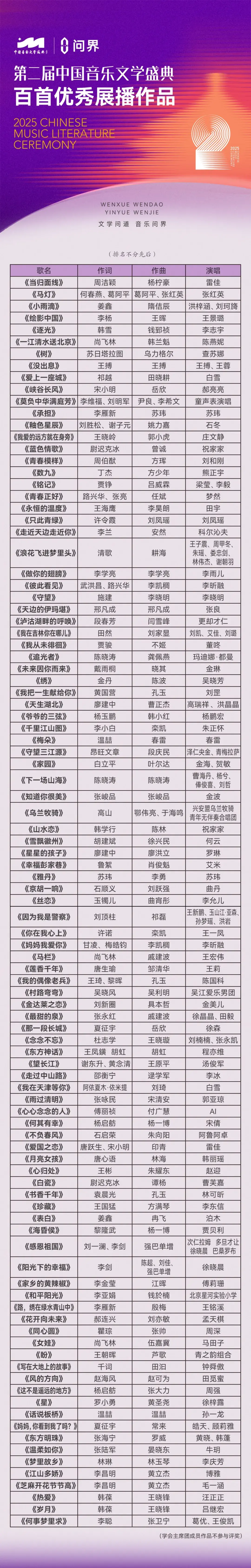 第二届中国音乐文学盛典“年度百首优秀展演作品征集评选”终评作品表(展播、获奖作品)