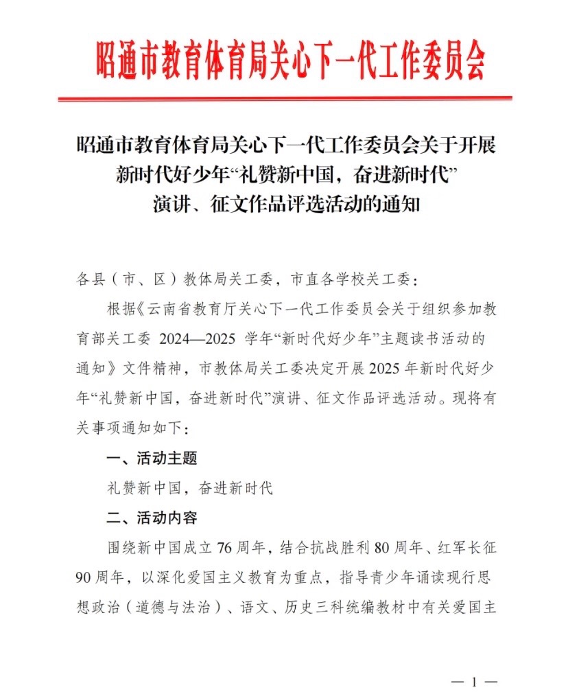 昭通市礼赞新中国·奋进新时代演讲、征文大赛圆满落幕