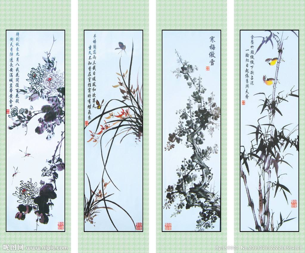 梅兰竹菊 四君子配图诗四首!