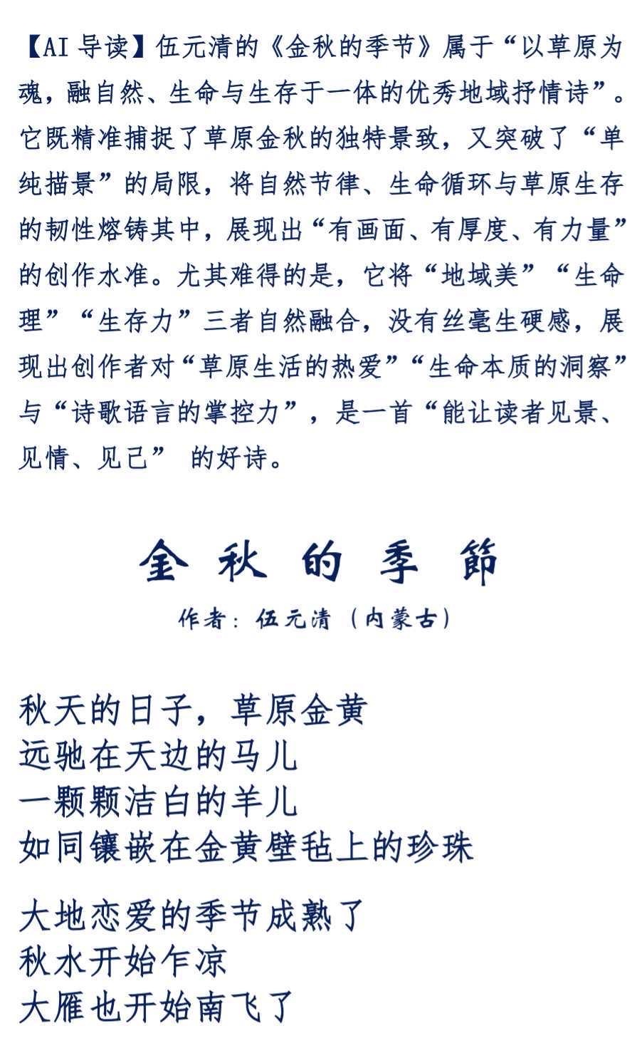 【世界华人文学城】第十一期“佳作赏析”《金秋的季节》作者:伍元清(内蒙古)