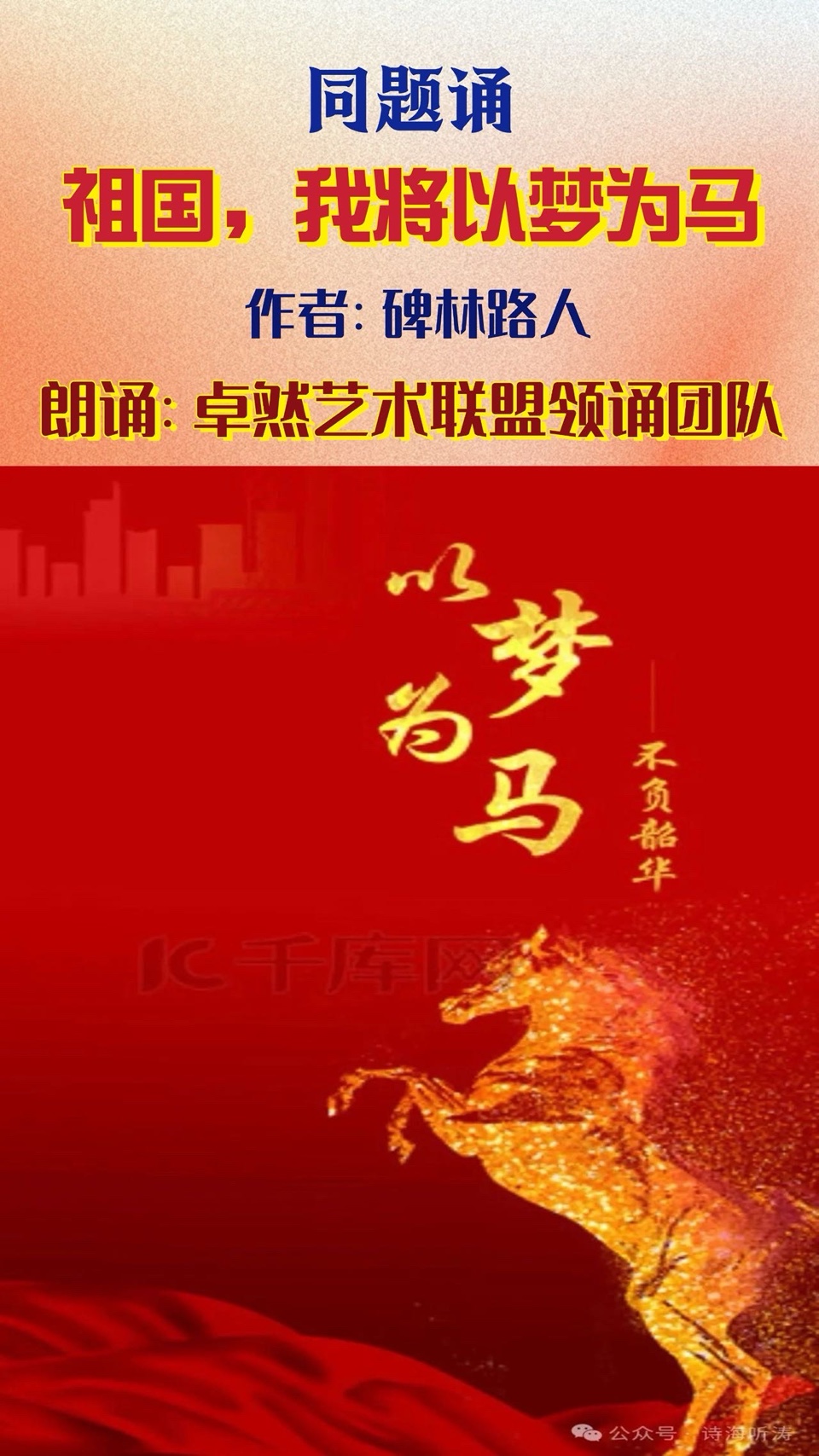 【国庆礼赞】卓然艺术联盟“喜庆祖国🇨🇳华诞”同题诵:祖国啊,我以梦为马|作者:碑林路人 朗诵:卓然联盟领诵团成都分会团员习诵展播(上集)