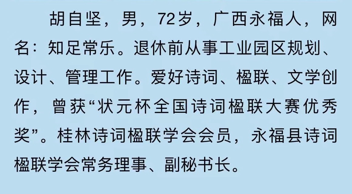 胡自坚先生《国庆礼赞与中秋寄怀》格律诗二首//桂林都市文学社(涵“桂林都市诗社” )第1340期.都市头条.桂林头条