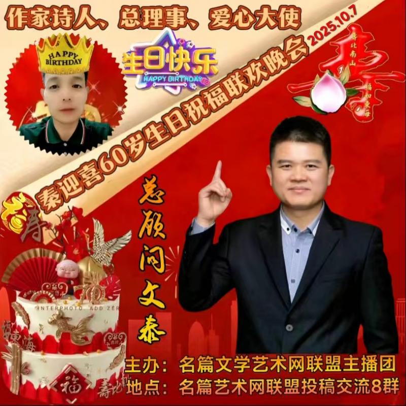 作家诗人、总理事、爱心大使秦迎喜60岁生日祝福联欢晚会 // 主办:名篇.文学艺术网联盟主播团