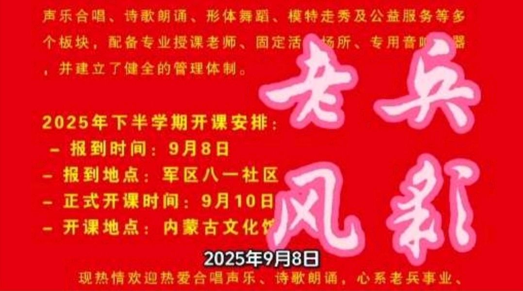 《致敬不老军魂!内蒙古老兵文工团2025下半学期开课,以艺术续写热血担当》2025年9月8日