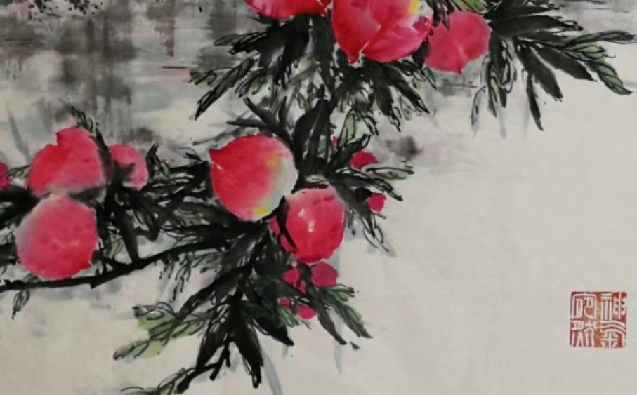 尹玉峰为深圳市委某局调研员粱嘉伟《桃之夭夭》大作欣题元曲一首