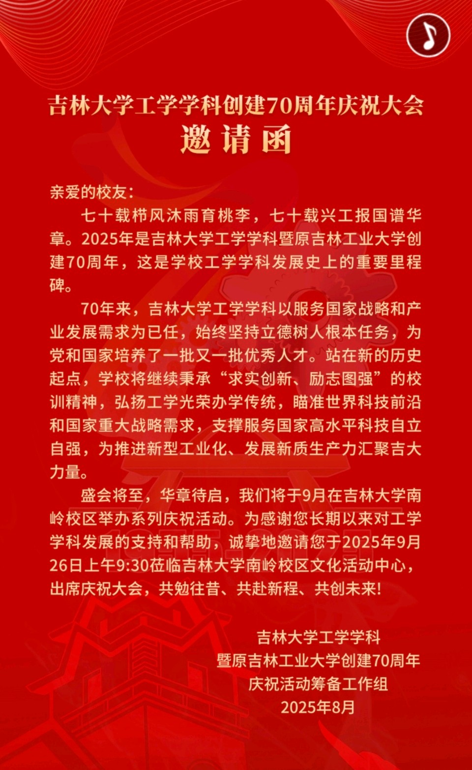 《七秩芳华歌响吉大!工学年代好声音邀您共赴青春之约!1955到2025》2025.8.14