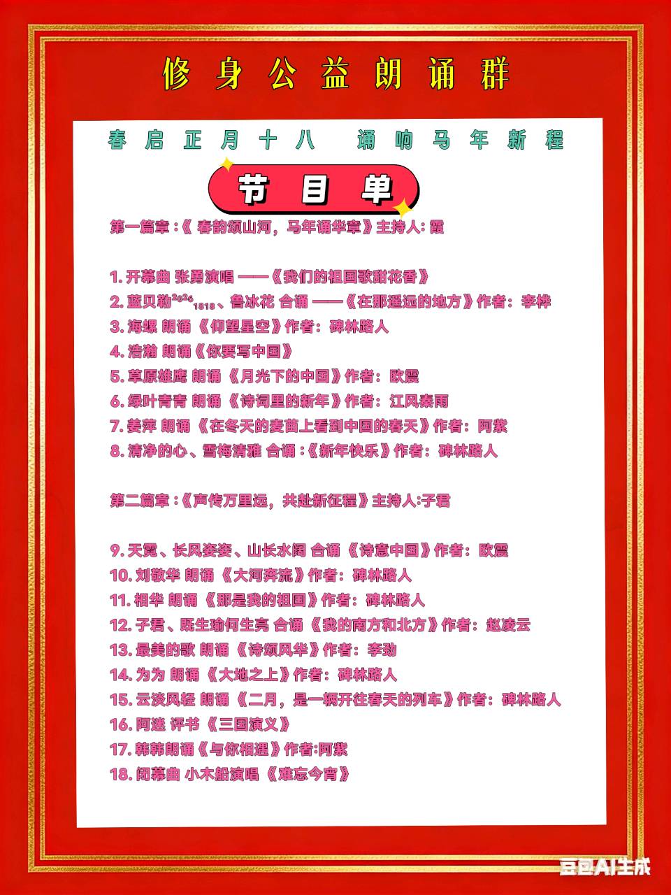 修身公益朗诵群马年新春联欢晚会