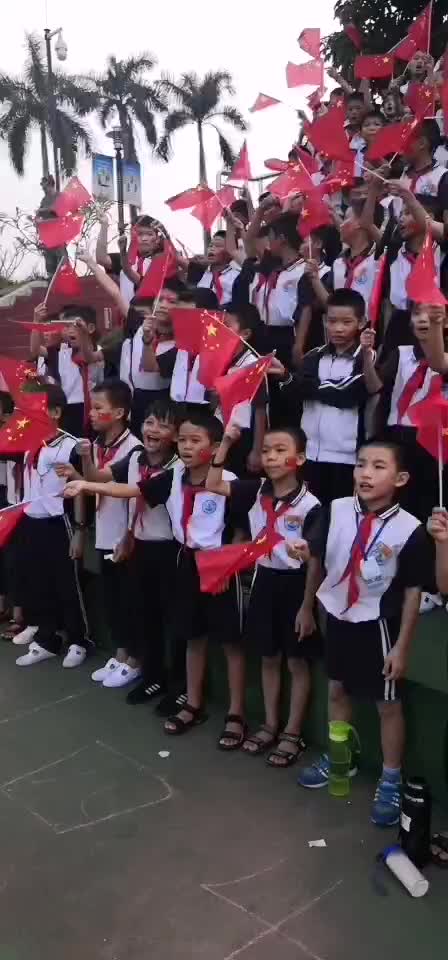 \ 海南儋州黄冈实验学校小学生举行爱国旗活动