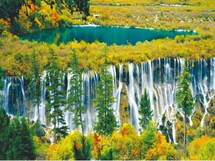 1、九寨沟是一条纵深50余km有着众多湖泊的山沟谷地,因沟内有树正、荷叶、则查洼等九个藏族村寨坐落在这片高山湖泊群中而得名。九寨沟的水流成丫状,源头是日则沟与则查洼沟,二水合流后注入树正沟,然后流出九寨沟。