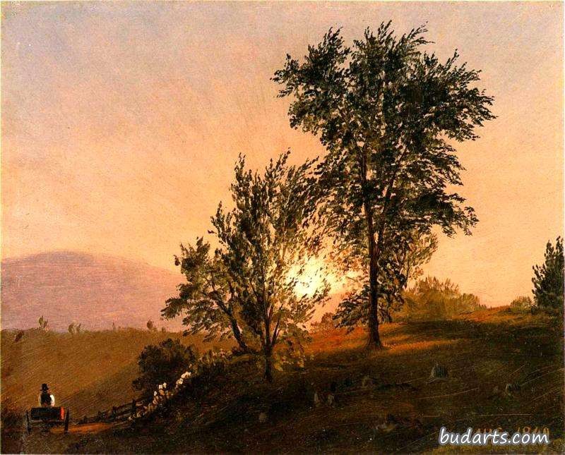 摘椰果绿思湖涨,落日霞红别梦迎。