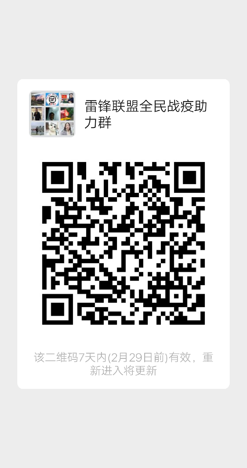 有意愿加入雷锋联盟全民战疫助力群奉献爱心的扫码请加微、进群,爱心❤热线:15374246116